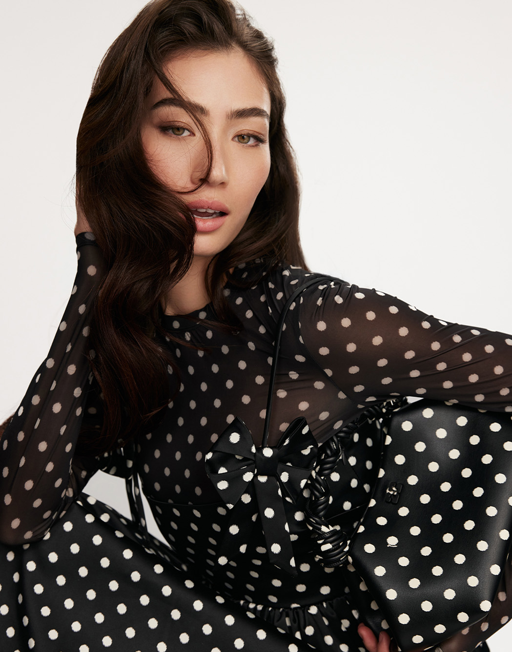 בהפקה, מדינג מצולמת בלוקים המשקפים את הטרנדים הבולטים של 2026: פטרנים מנומרים, לוקים מנוקדים, אאוטפיטים מעור וטוטאל לוק דנים און דנים. לצד זאת, היא לובשת גם פריטים מהמותג החדש מגדה, שנכנס השבוע לפקטורי 54 ומסמן כניסה מסקרנת לזירת האופנה המקומית. בין הלוקים נכללות שמלות מהקולקציה החדשה של מגדה, עם אלמנט הפרח שהפך לאחד מסימני ההיכר הבולטים שלה.