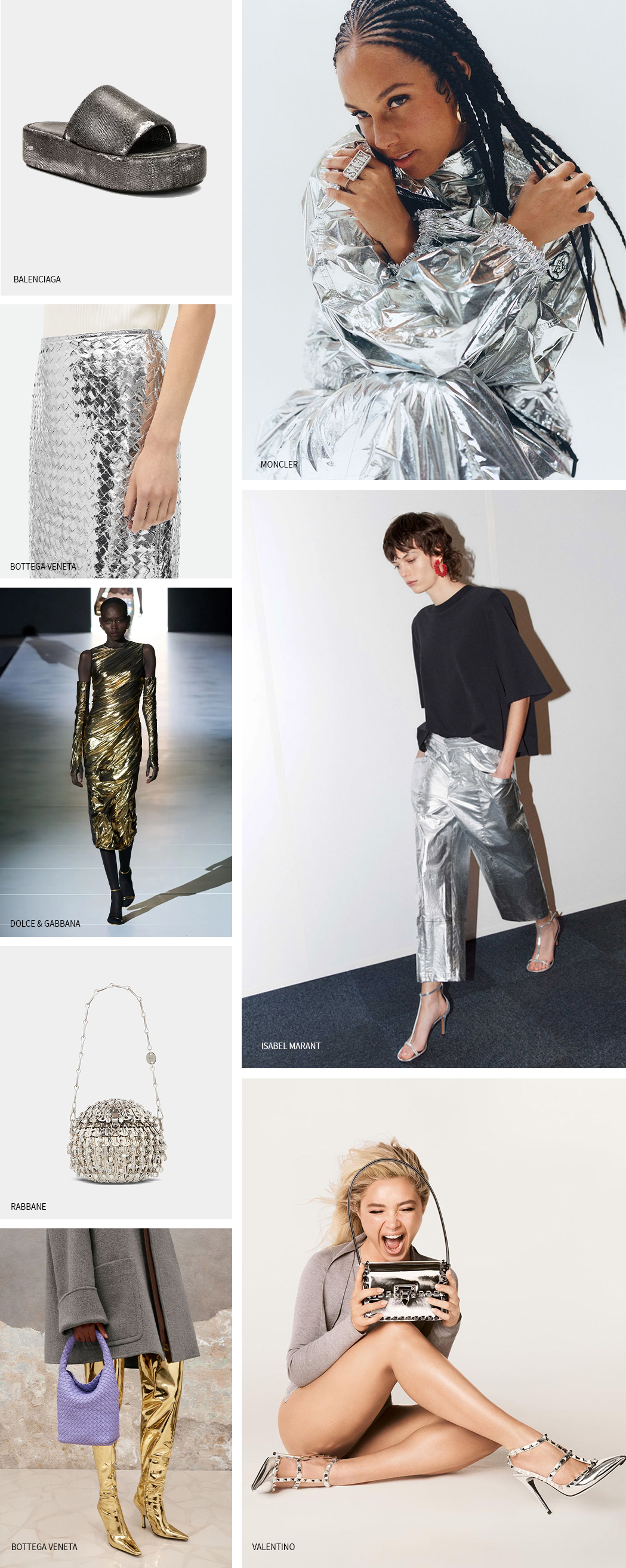 לא כל הנוצץ זהב: העונה הוא גם כסוף, ורוד, ירוק ועוד. פריטים מנצנצים חוזרים אלינו בכל שנה, בעיקר בתקופת החגים וחגיגות הסילבסטר. כעת הם ילוו אותנו גם בימי בחול, בקז'ואל ואפילו ברגעים ספורטיביים יותר. הפאפרים הכסופים של MONCLER, הג'ינס המוזהב של GANNI, כפכפי הסליידס של BALENCIAGA ומכנסי העור בטקסטורת מראה כסופה של ISABEL MARANT הם כולם דוגמאות שיכולות להתאים בקלות ליומיום.