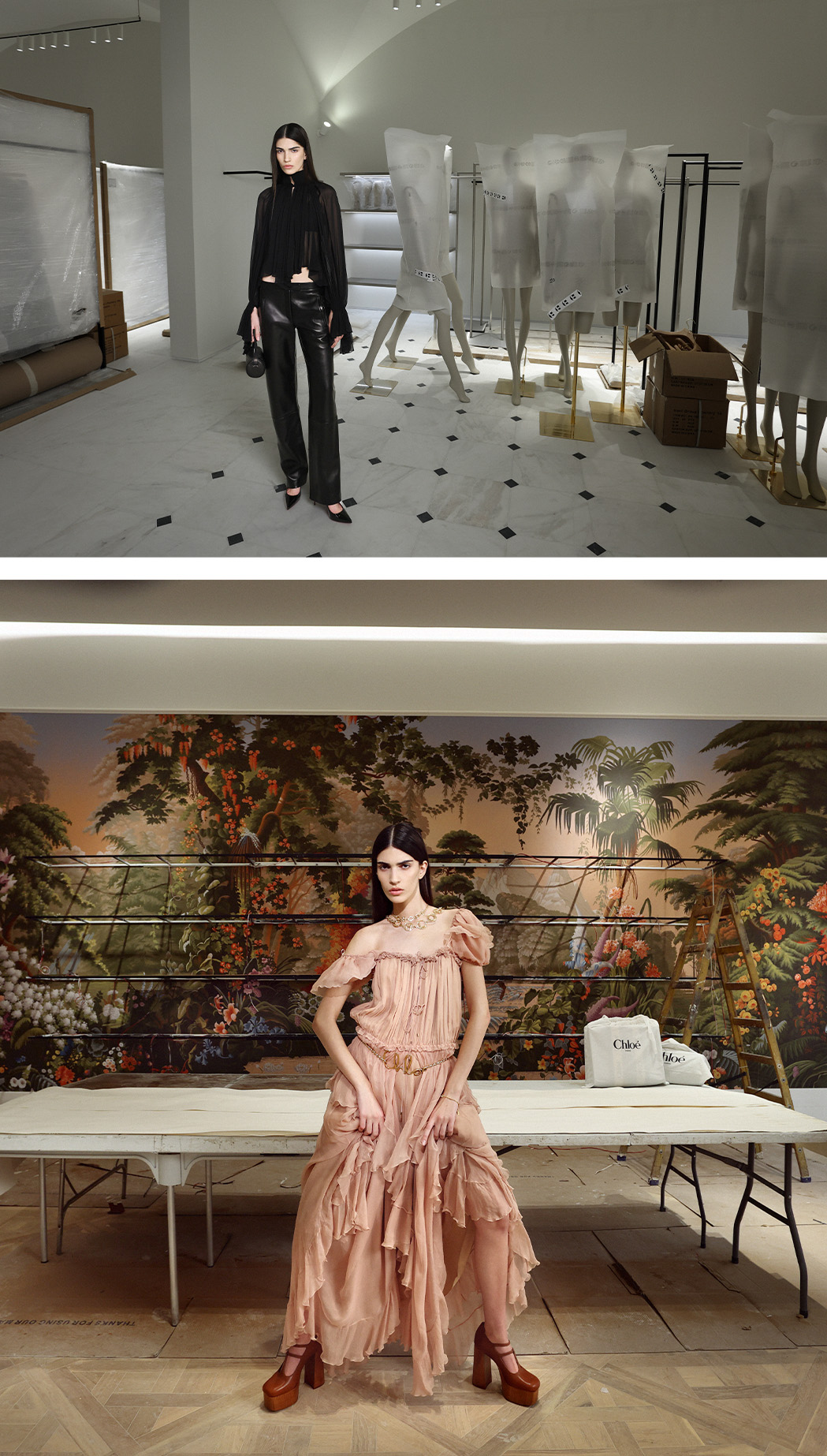 מוריה הגיעה ימים ספורים אחרי שפתחה את התצוגה של Lacoste בשבוע האופנה בפריז ומביאה אל Factory 54 מבט שמתעכב דווקא על הרגע שלפני, על היופי שבבנייה, בתהליך, במה שעוד מתגבש. כשהיא מוקפת ברצפות מכוסות, קירות חשופים, בובות תצוגה שממתינות למשמעות, דרך עין רגישה לפרטים ולמתח שבין גולמי למלוטש, היא לוכדת את החלל כשהוא עדיין בתנועה ומעניקה משמעות לזמן הביניים. בעבודתה, אופנה אינה רק תוצאה סופית אלא סיפור של התהוות, רגע חד-פעמי שנעלם כמעט באותה מהירות שבה נוצר.