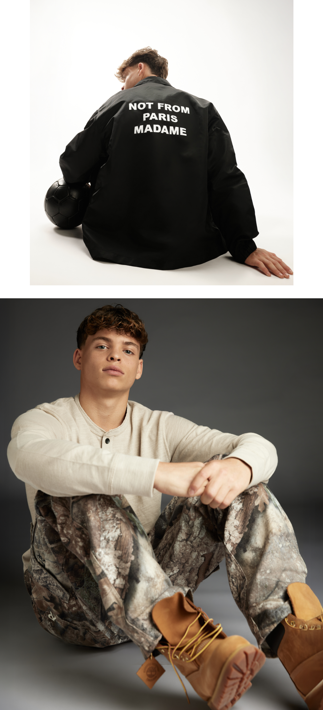 האסתטיקה מדויקת אך לא נוקשה: בגדים שמרגישים חיים על הגוף, כאלה שאפשר לחזור אליהם שוב ושוב בלי לחשוב פעמיים. הגזרות בוקסיות, המכנסיים רחבים, והתחושה הכללית היא של נוחות, חופש ושחרור - בלי לוותר על נוכחות או על דיוק. הדגש עובר לאיכות הבדים, למשקל הנכון, ולגזרות שיודעות להחזיק זמן. הפרינט הצבאי, שמלווה אותנו כבר תקופה, ממשיך להיות חלק בלתי נפרד מהשפה- חזק, מוכר ומשמעותי, כזה שמוסיף עומק ואופי בלי להרגיש טרנדי מדי. לצידו, סניקרס עם נוכחות ברורה מעגנות את הלוק בהווה, ומדברות בדיוק בשפה שהדור הצעיר מחפש: פרקטית, בטוחה בעצמה, ומחוברת לאדמה.