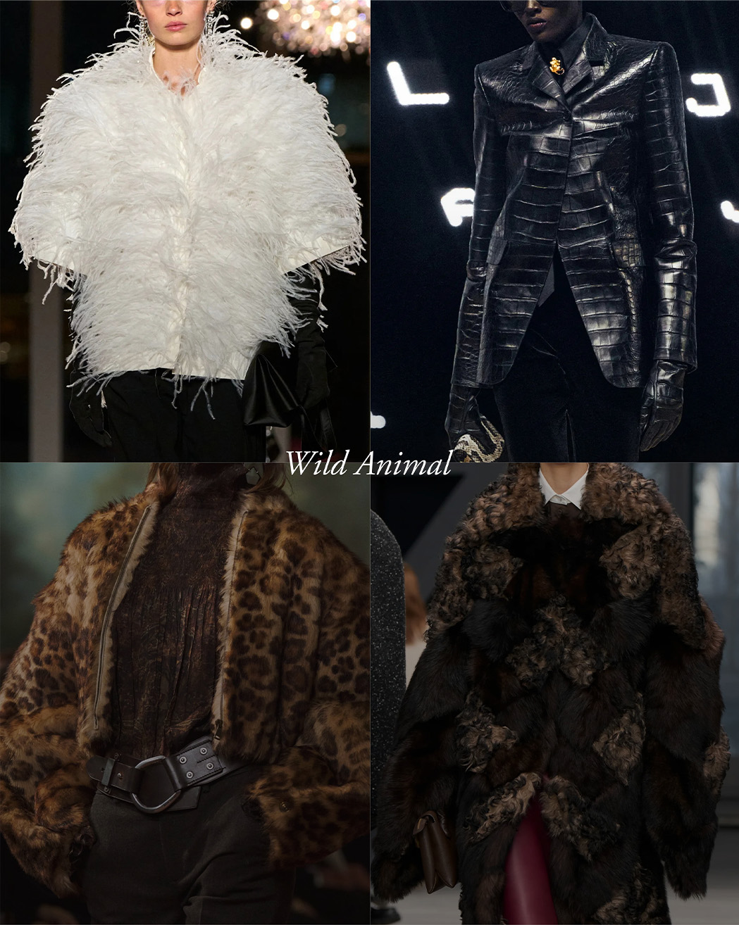 היצר החייתי השתלט על מסלולי האופנה בצורת הדפס, נוצות, פרוות וטקסטורות אקזוטיות. מאז ומתמיד עולם החיות משמש השראה למעצבים רבים, וגם בשבוע האופנה האחרון הוא קיבל פרשנות בוגרת ונועזת יותר.