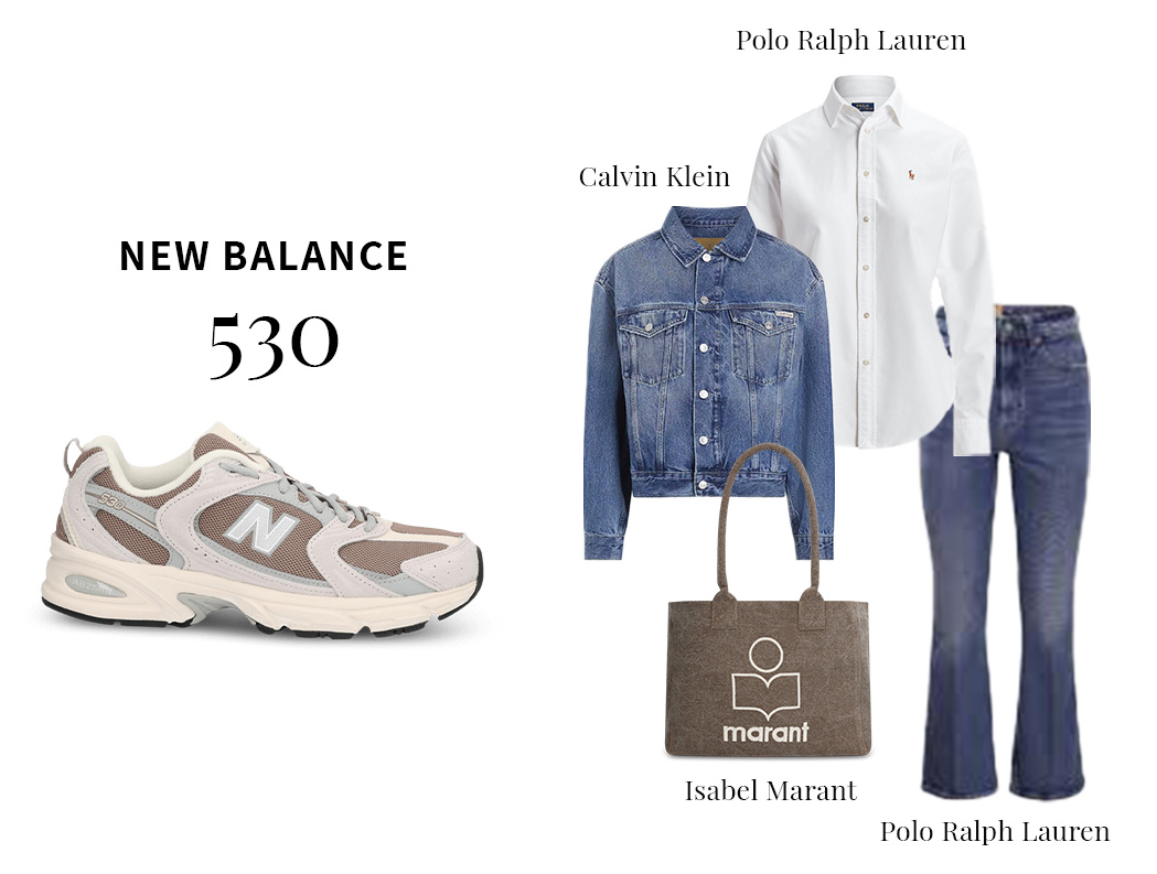 דגם 530 של ניו באלאנס הוא הוכחה לכך שנעלי ריצה יכולות להפוך לאייקון אופנתי. עם עיצוב שמשלב ניחוח רטרו וטכנולוגיה מתקדמת, הן הבחירה המושלמת לשדרוג כל לוק יומיומי. איך לובשים אותן? חולצה לבנה מכופתרת של פולו ראלף לורן, ז'קט ג'ינס בגזרה קלאסית של קלווין קליין, ג'ינס מתרחב של פולו ראלף לורן ותיק טוט של איזבל מארה – שילוב מדויק של אורבניות עם נגיעות אלגנטיות.