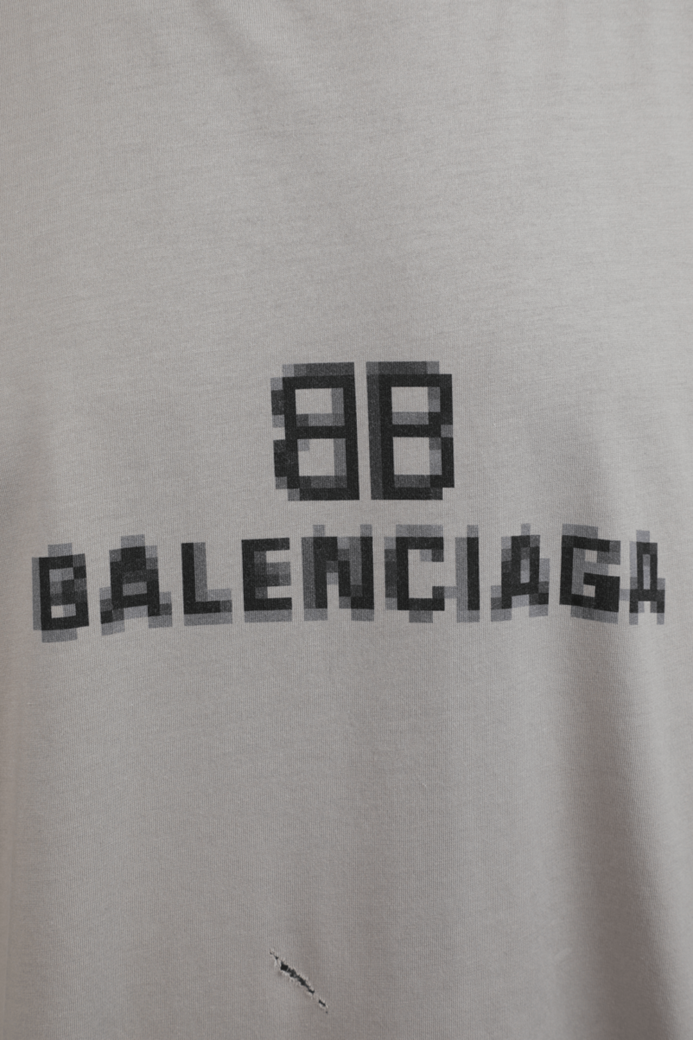 טי שירט בעיצוב בית האופנה הרותח בלנסיאגה. זהו דגם העשוי 100% כותנה בגוון אפור כאשר שם המותג מתנוסס על החזית בסגנון מפוקסל ומתוחכם. לפריט גזרה ישרה ומעט אוברסייז טרנדית עם שרוולים קצרים ושמוטים בעוד שקרעים עדינים המעטרים את החולצה משלימים את סגנונה הסופר קול. מדובר בפיס היסטרי שיקפיץ כל לוק בסטייל אורבני ואולטרה עדכני.