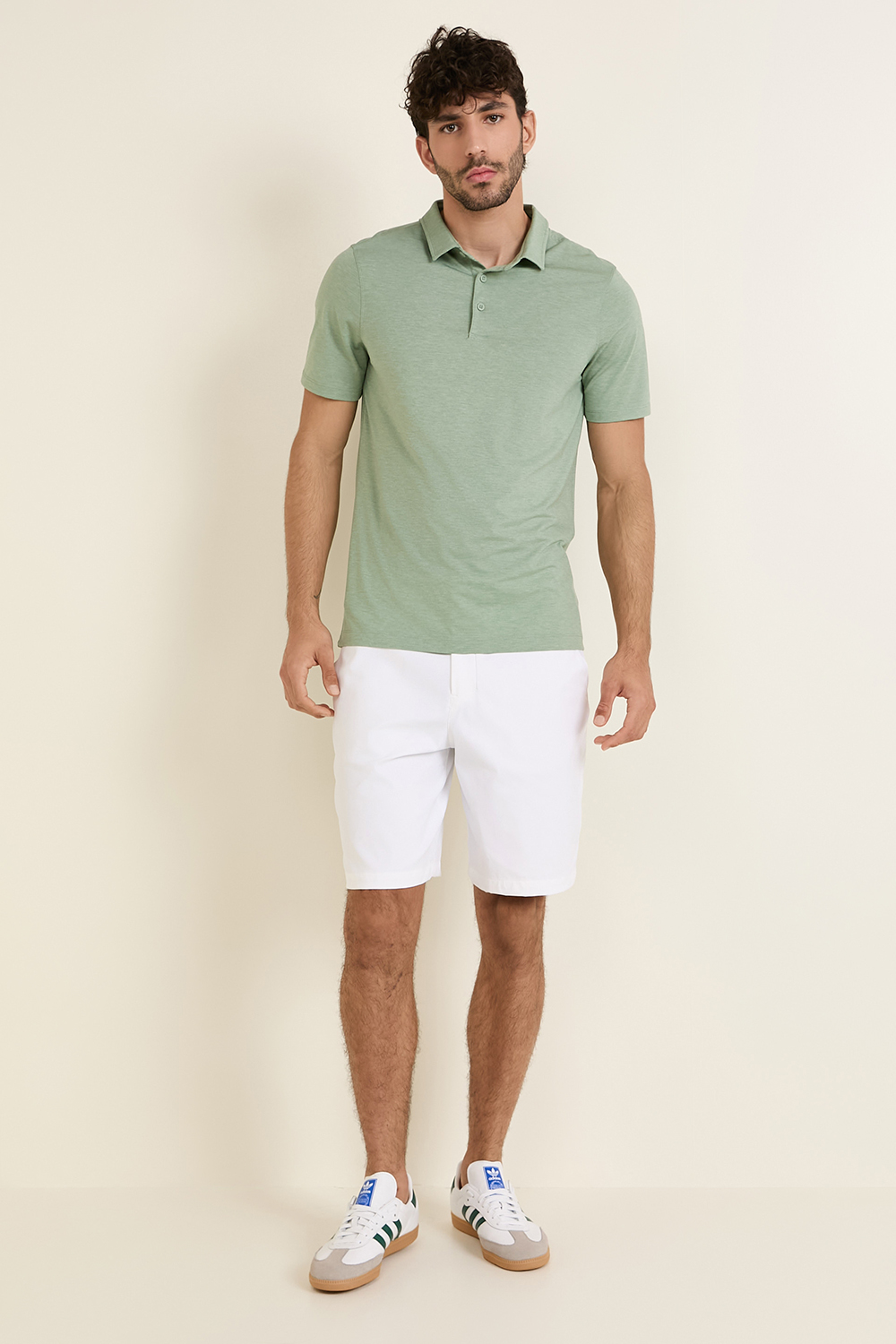 חולצת פולו בגזרת סלים קלילה ונוחה העשויה משילוב של טכנולוגיה המנטרלת ריחות רעים ומנדפת זיעה עם תוספת סיבי Lycra® עבור מתיחה ושימור צורה.