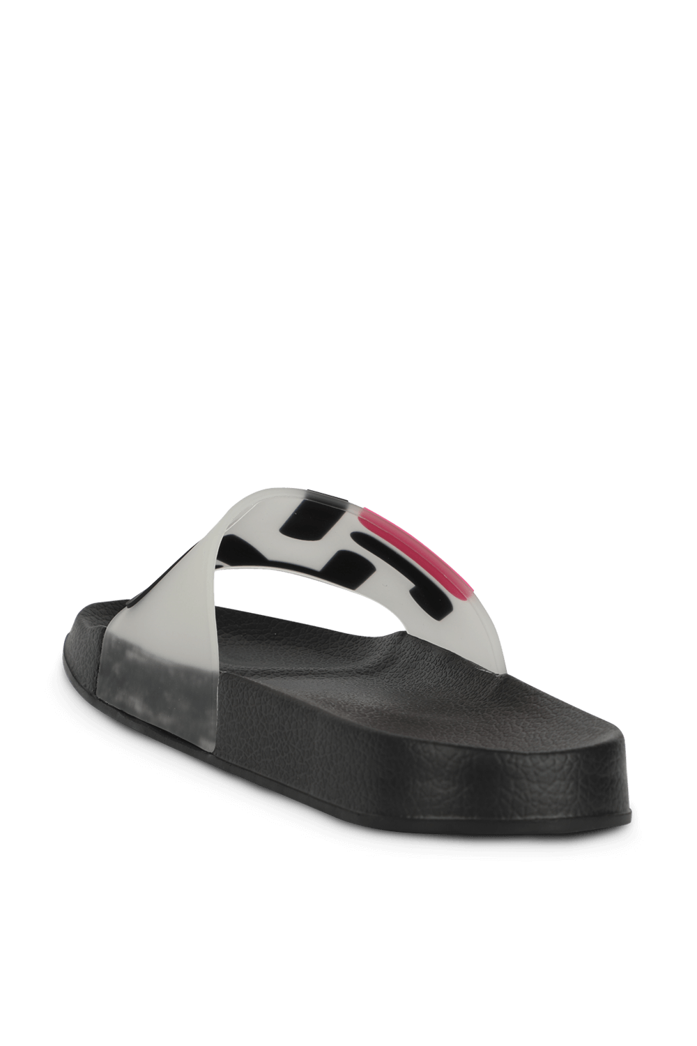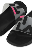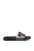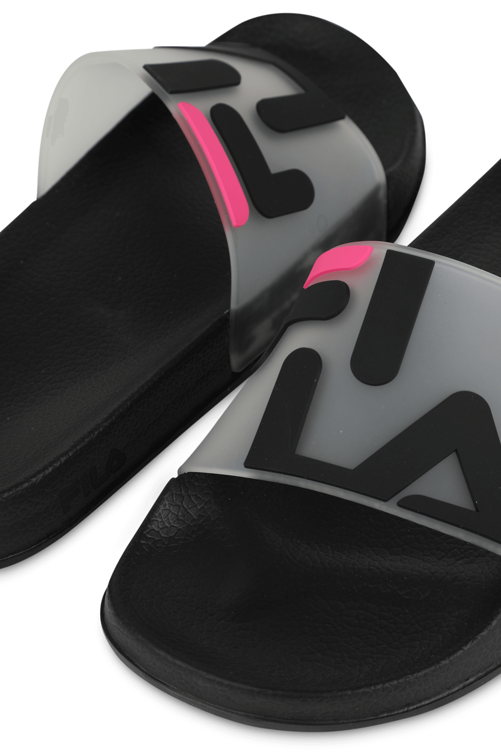 בית האופנה האיטלקי FILA היה אחד המוכרים והידועים בשנות ה-90 והוא ללא ספק עושה קאמבק מפואר בעונות האחרונות. אלו סנדלי סליידס העשויות טקסטיל איכותי בצבע שחור. הרצועה הקדמית היא סמי שקופה וכוללת את שם המותג. סוליות הנעלים מרופדות עם מדרכים ממותגים לאקסטרה סטייל. זוג המשלב באופן מושלם רכות ונוחות עם סטייל בלתי מתפשר.
