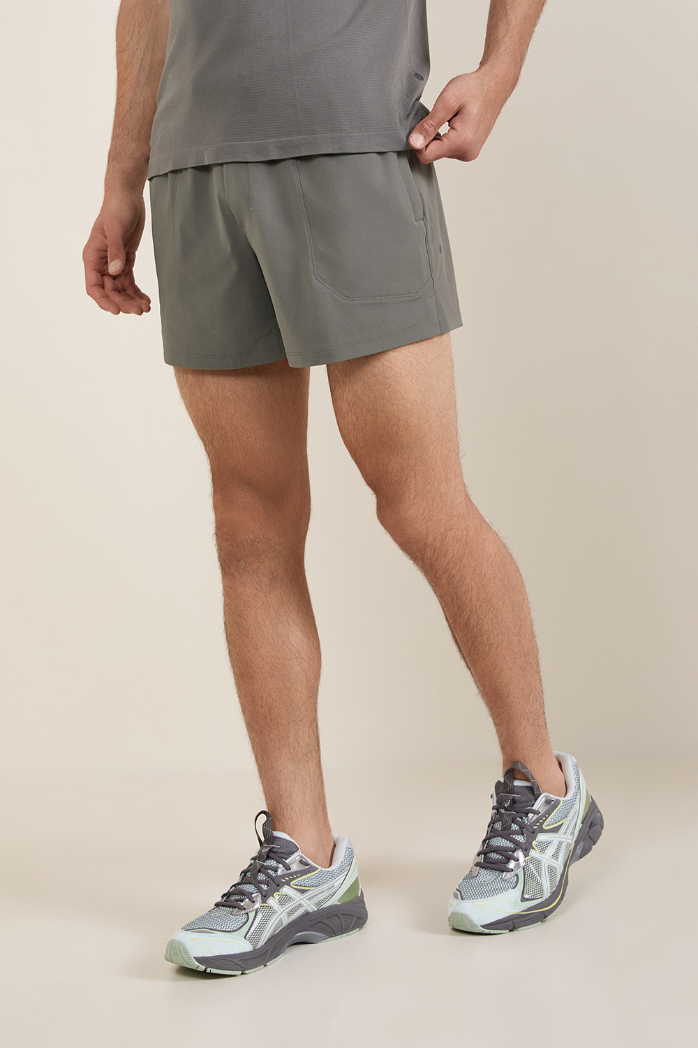 מכנסיים קצרים המעוצבים לאימון, עשויים בד ניילון ממוחזר עמיד למים, מנדף זיעה ומתייבש בקלות, בשילוב רשת בחגורת המותניים.