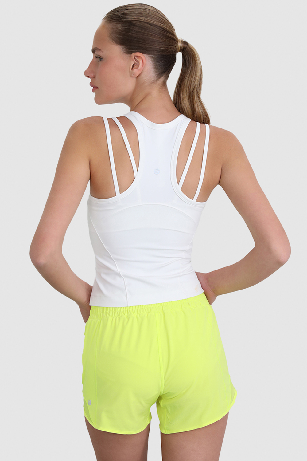 גופייה מדגם Align™ Waist-Length Racerback. החזייה משולבת בד Nulu נוח כך שלא תרגישי דבר מלבד התרגול שלך. לדגם נוספו סיבי Lycra® עבור גמישות ושימור צורה מדוייק לצד נידוף זיעה וקאפים נשלפים.