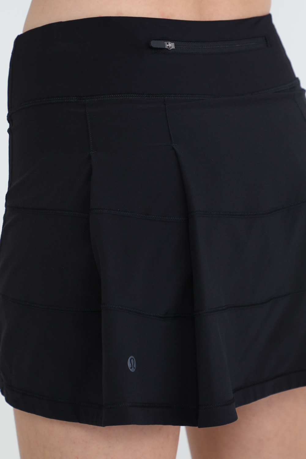 חצאית שעוצבה עבור טניס וריצה. על המגרש או בשבילים. בעלת כיס כפול המתאים לכדור טניס או סמארטפון. מבד קל משקל הנמתח לארבעה כיוונים. מנדף זיעה ומתייבש מהר, בטנולוגיית Luxtreme™, כולל בד רשת לאוורור. הוא מנדף זיעה, בעל תחושה קרירה וחלקה, ומכיל תוספת של סיבי Lycra® למתיחה בארבעה כיוונים ולשימור צורה. 100% מהפוליאסטר במוצר זה ממוחזר.