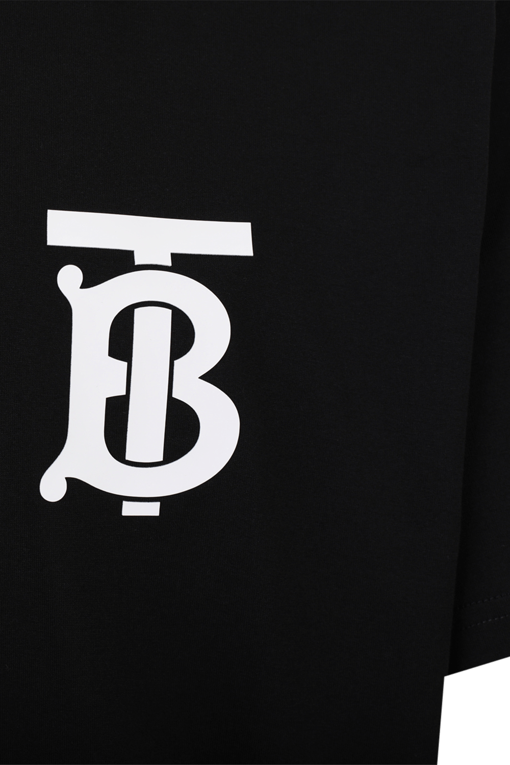 חולצת טי-שירט העשויה 100% כותנה משובחת בגוון שחור לבית האופנה Burberry - מונוגרמת המותג הרקומה בחוט לבן באזור החזה מעניקה מראה ייחודי לפריט איכותי זה אשר מציג גזרת אוברסייז עדכנית שתקפיץ לך בקלות את הסטריט לוק.